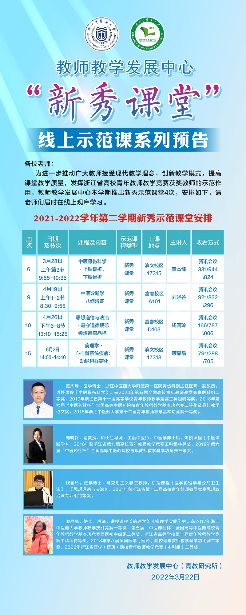 教师教学发展中心“新秀课堂”线上示范课系列预告