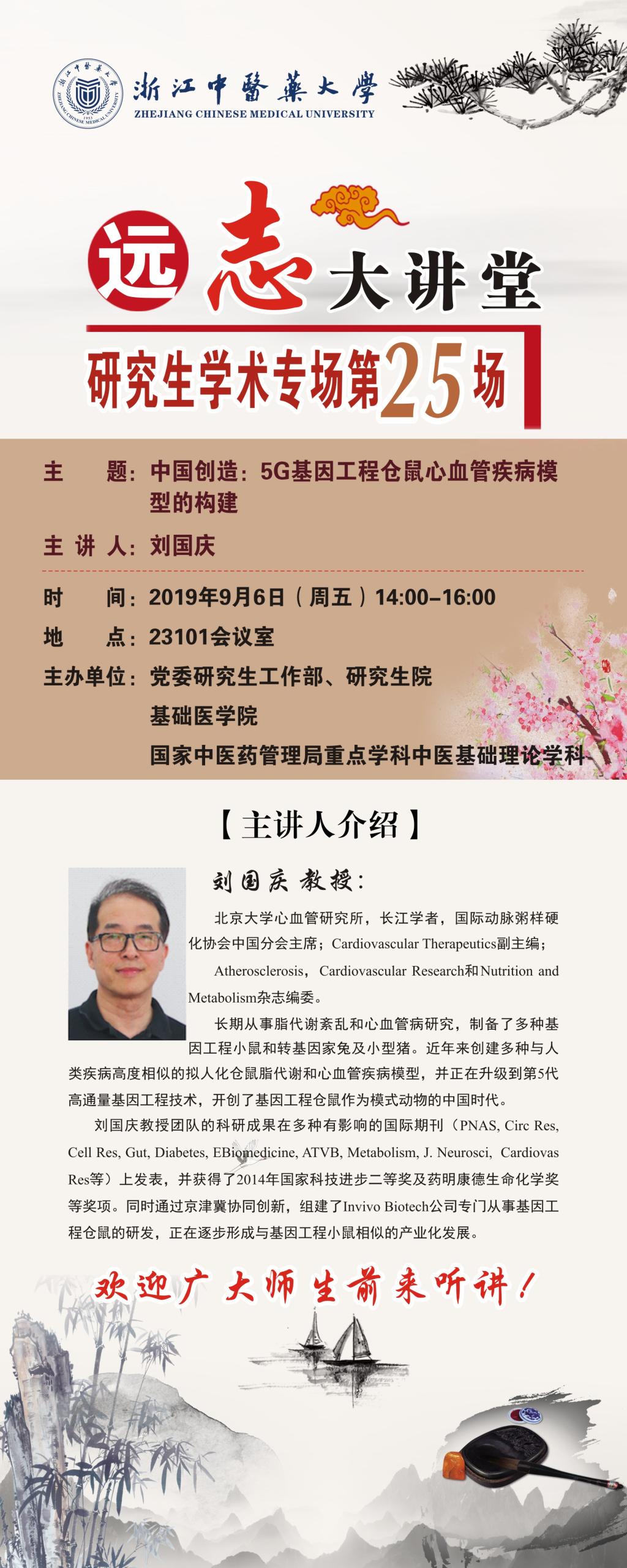 学术讲座预告:中国创造:5G基因工程仓鼠心血管疾病模型的构建