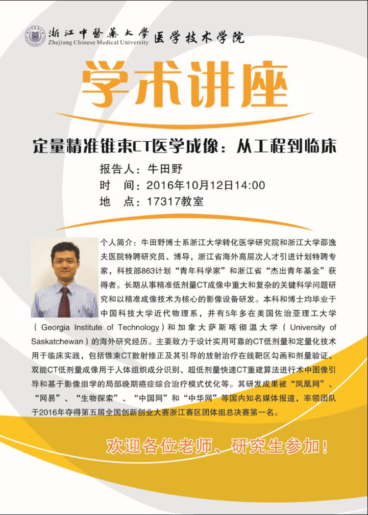 讲座预告——定量精准锥束CT医学成像:从工程到临床