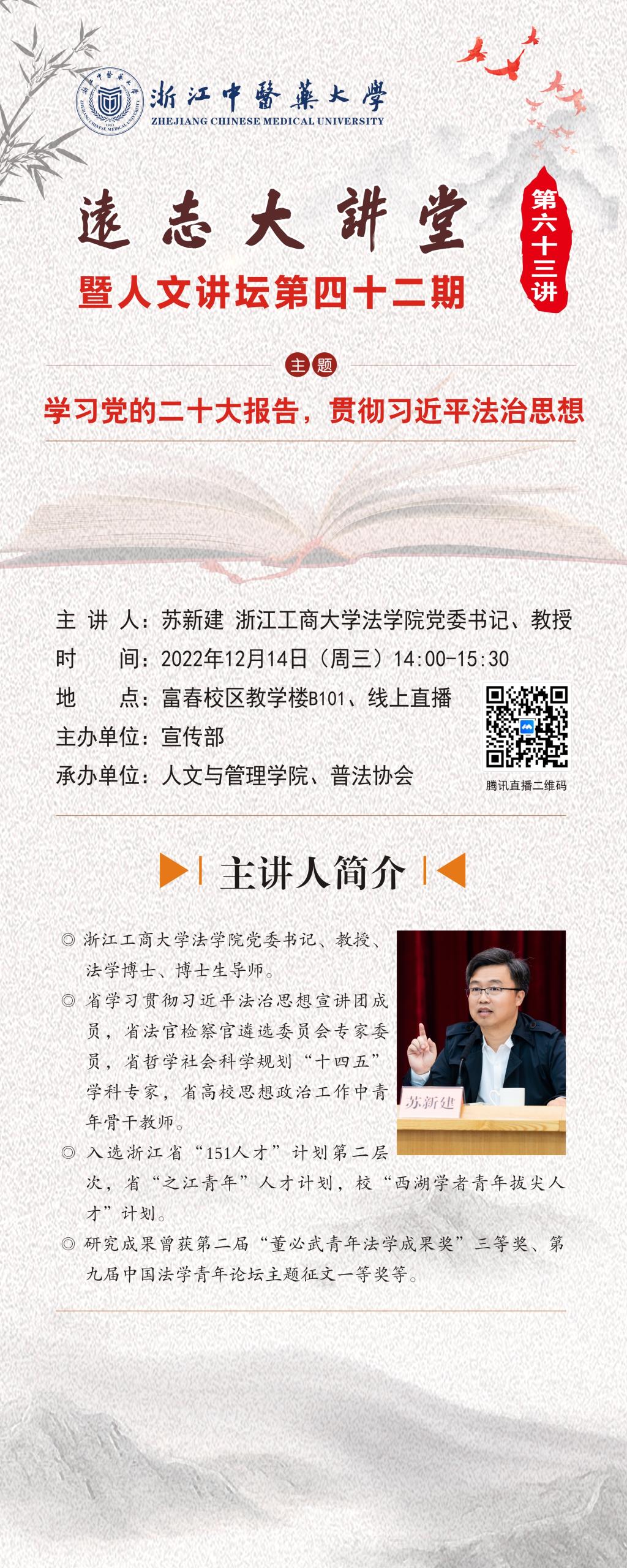 远志大讲堂第六十三讲暨人文讲坛第四十二期:学习党的二十大报告,贯彻习近平法治思想
