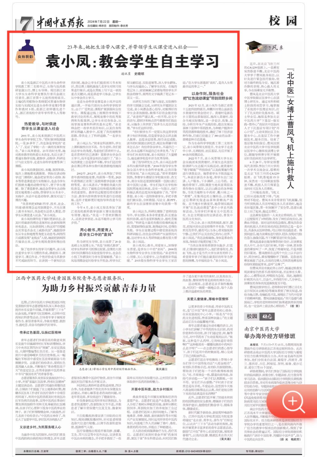 中国中医药报、中国中医药网:23年来,她把生活带入课堂,并带领学生从课堂进入社会——袁小凤:教会学生自主学习