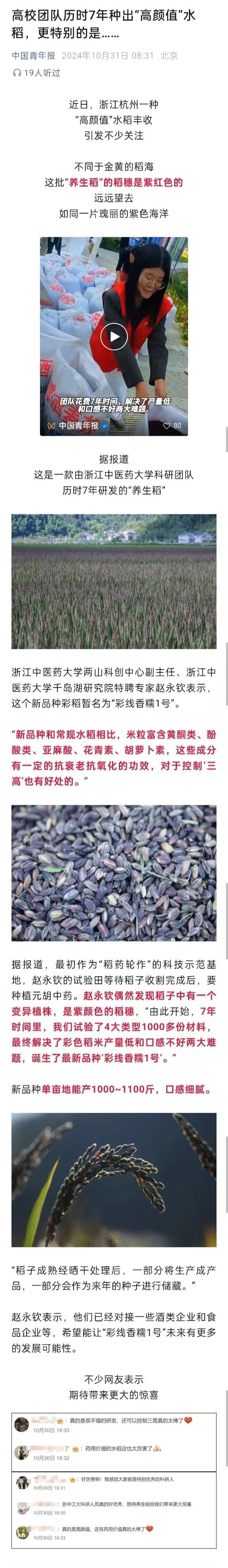 中国青年报:高校团队历时7年种出“高颜值”水稻,更特别的是……