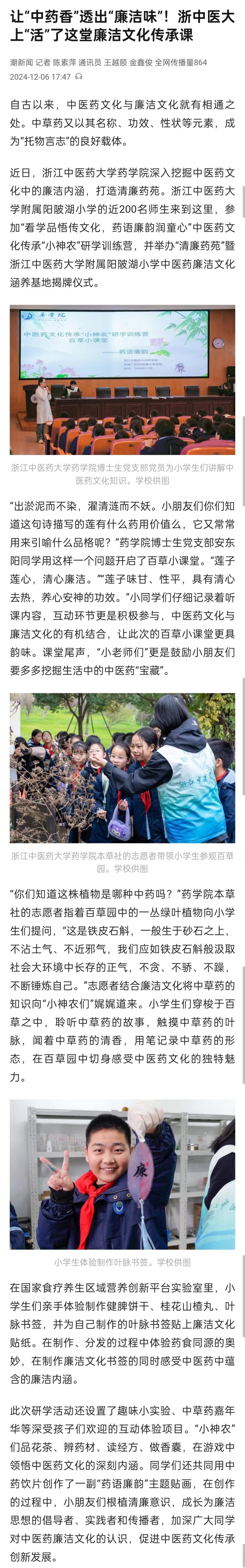 让“中药香”透出“廉洁味”!浙中医大上“活”了这堂廉洁文化传承课