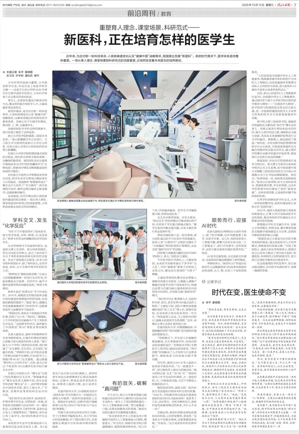 这些画面,共同勾勒出浙江高校新医科建设的现实图景:一场从育人理念、课堂场景到科研范式的深度重塑,正悄然改变着未来医生的培养路径。