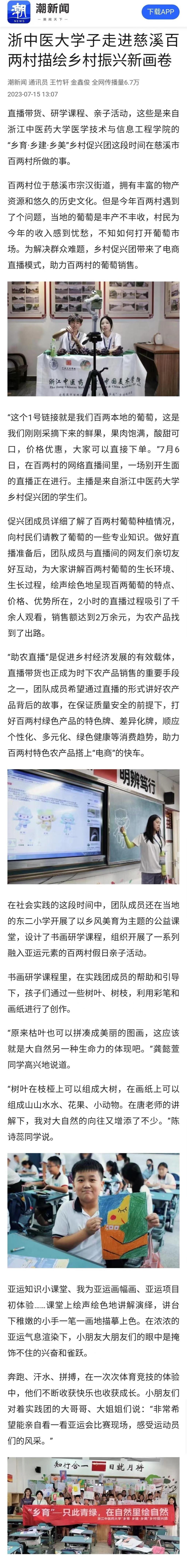 潮新闻:浙中医大学子走进慈溪百两村描绘乡村振兴新画卷