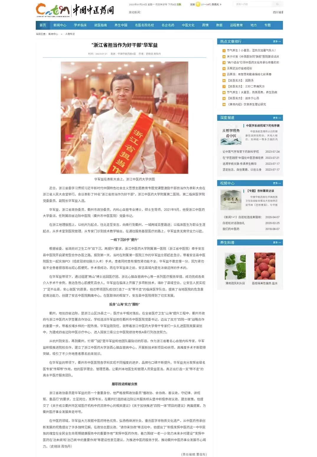 华军益,浙江省政协委员,衢州市政协委员,内科心血管专业博士,硕士生导师。2021年9月,他受久久精品一区二区三区四区委派,任附属四省边际中医院(衢州市中医医院)党委书记。