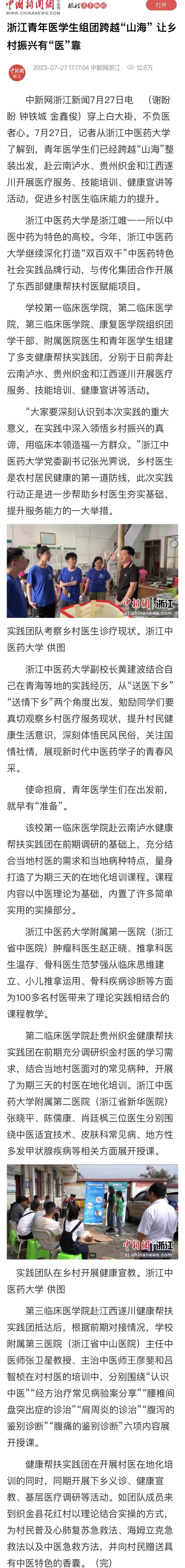 浙江青年医学生组团跨越“山海” 让乡村振兴有“医”靠