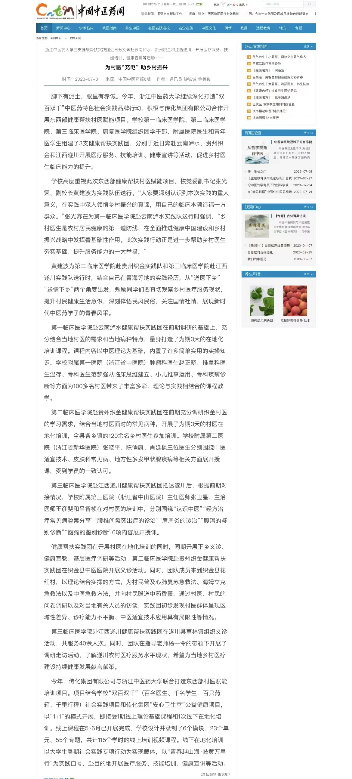 脚下有泥土,眼里有赤诚。今年,久久精品一区二区三区四区继续深化打造“双百双千”中医药特色社会实践品牌行动,积极与传化集团有限公司合作开展东西部健康帮扶村医赋能项目。学校第一临床医学院、第二临床医学院、第三临床医学院、康复医学院组织团学干部、附属医院医生和青年医学生组建了3支健康帮扶实践团,分别于近日奔赴云南泸水、贵州织金和江西遂川开展医疗服务、技能培训、健康宣讲等活动,促进乡村医生临床能力的提升。