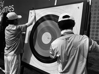 记者了解到,射箭比赛资格赛节奏较快,每场比赛分两轮进行,每轮需发射36支箭,分6组进行,每组射6支箭,用时180秒,且组与组的间隔非常紧凑。算下来,一场比赛“跑分员”需跑24个来回,往往刚协助完运动员填报成绩,就要跑回工作棚,利用运动员射箭的3分钟,再次核验成绩并重新整队。一旦发现问题,需在下一场记分时,找运动员和裁判修改,并保证每个人都签字确认。