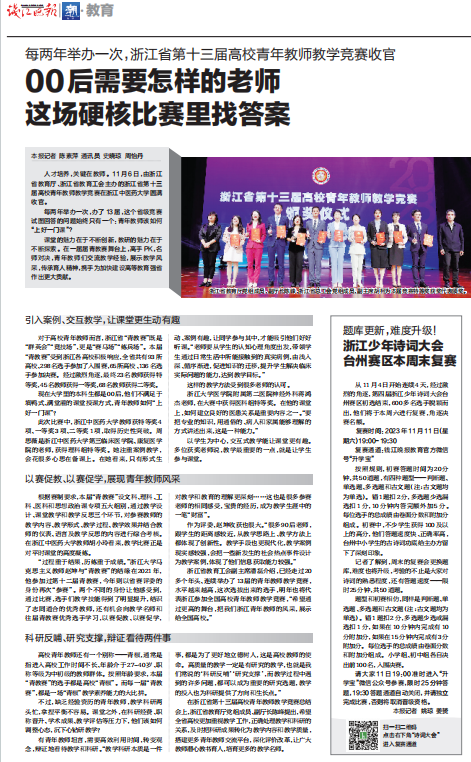 钱江晚报、潮新闻:00后需要怎样的老师 这场硬核比赛里找答案